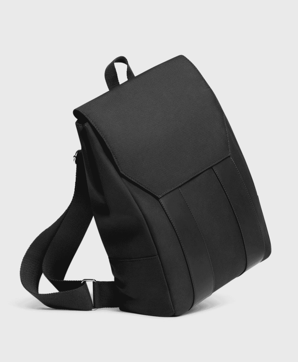 If you want to go for a tonal look, a minimalist backpack could work well, or find one in a muted colour that could combine well with an all-black look.
