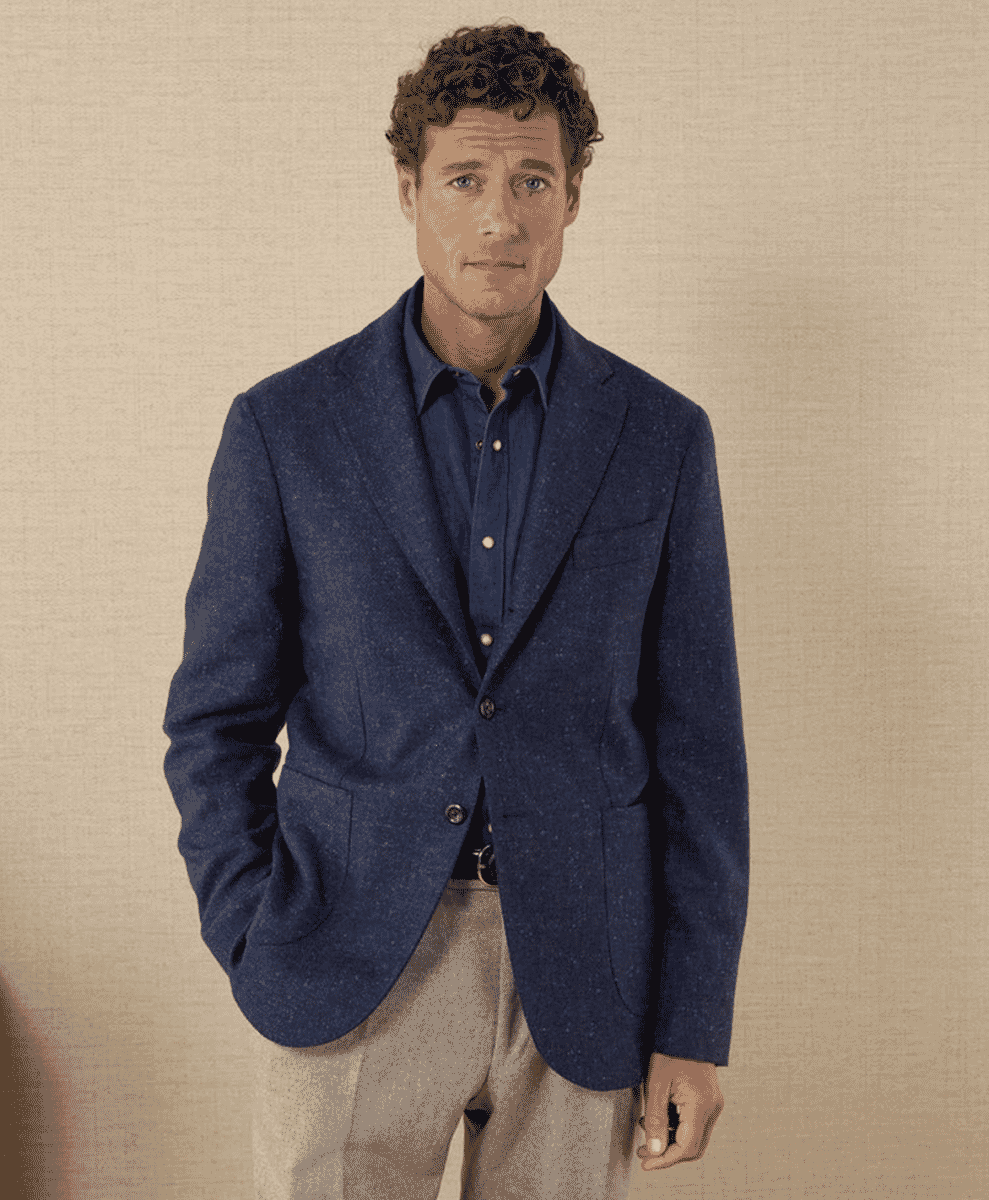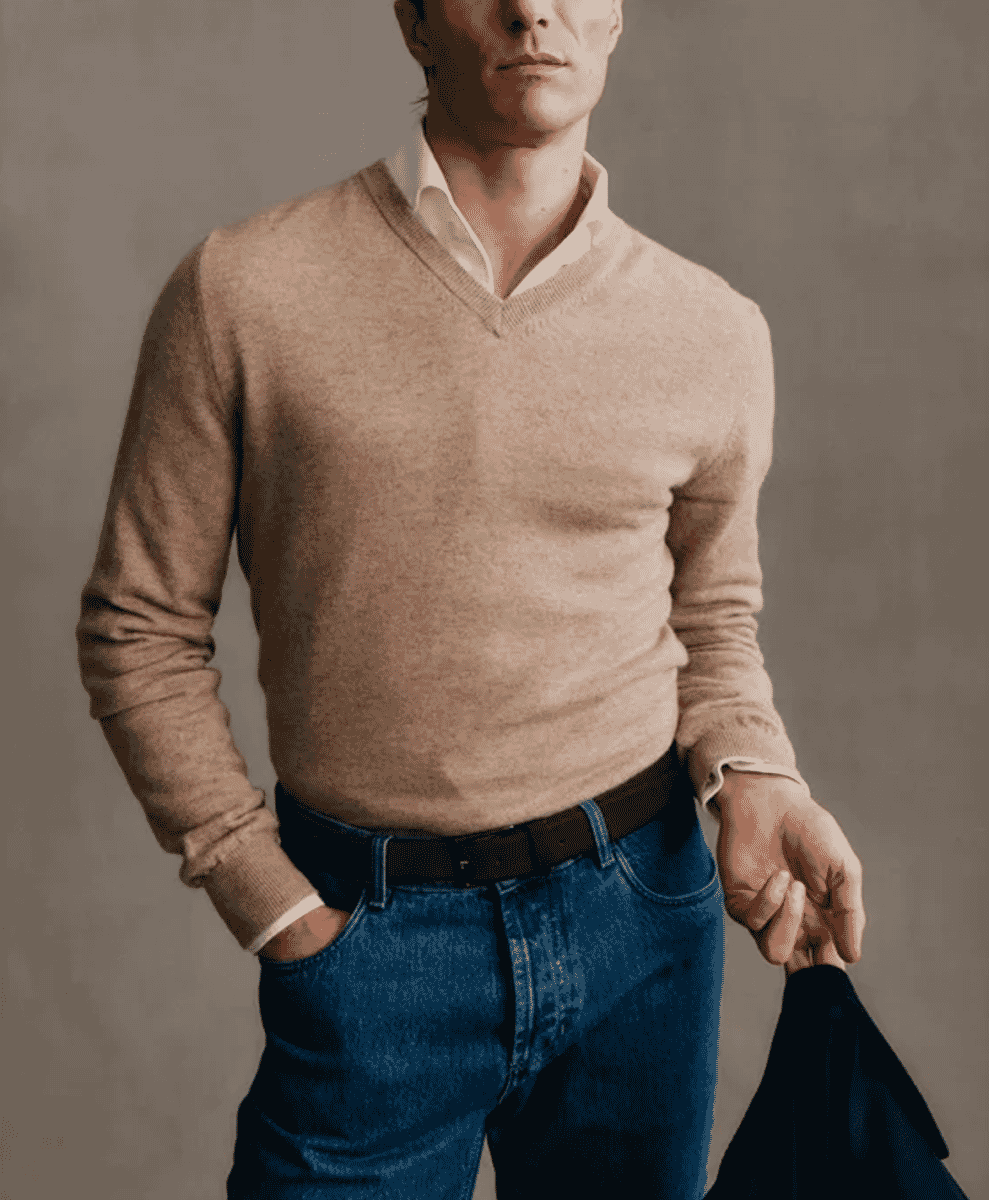 Embrace the relaxed atmosphere of Casual Friday while maintaining your style quotient. Opt for a navy blazer that effortlessly straddles the line between casual and smart. Complement it with dark jeans and a luxuriously soft gray cashmere sweater for comfort and elegance. Choose brown suede chukka boots that offer both a relaxed vibe and a touch of sophistication. As the winter breeze picks up, layer your look with a light scarf and leather gloves that provide warmth while adding refinement to your ensemble.