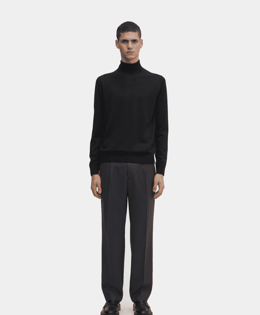 The crewneck is the dependable friend of your winter wardrobe – understated, reliable, and unlikely to let you down. Stick to soft, thin wool – merino or cashmere if you’re feeling extravagant – and choose colours that work with your basics: grey, black, or beige. If you’re aiming to look a little less predictable, try richer tones like forest green or burgundy. It’s versatile enough to wear on its own or layered over a shirt for an office-friendly nod to casual dressing.