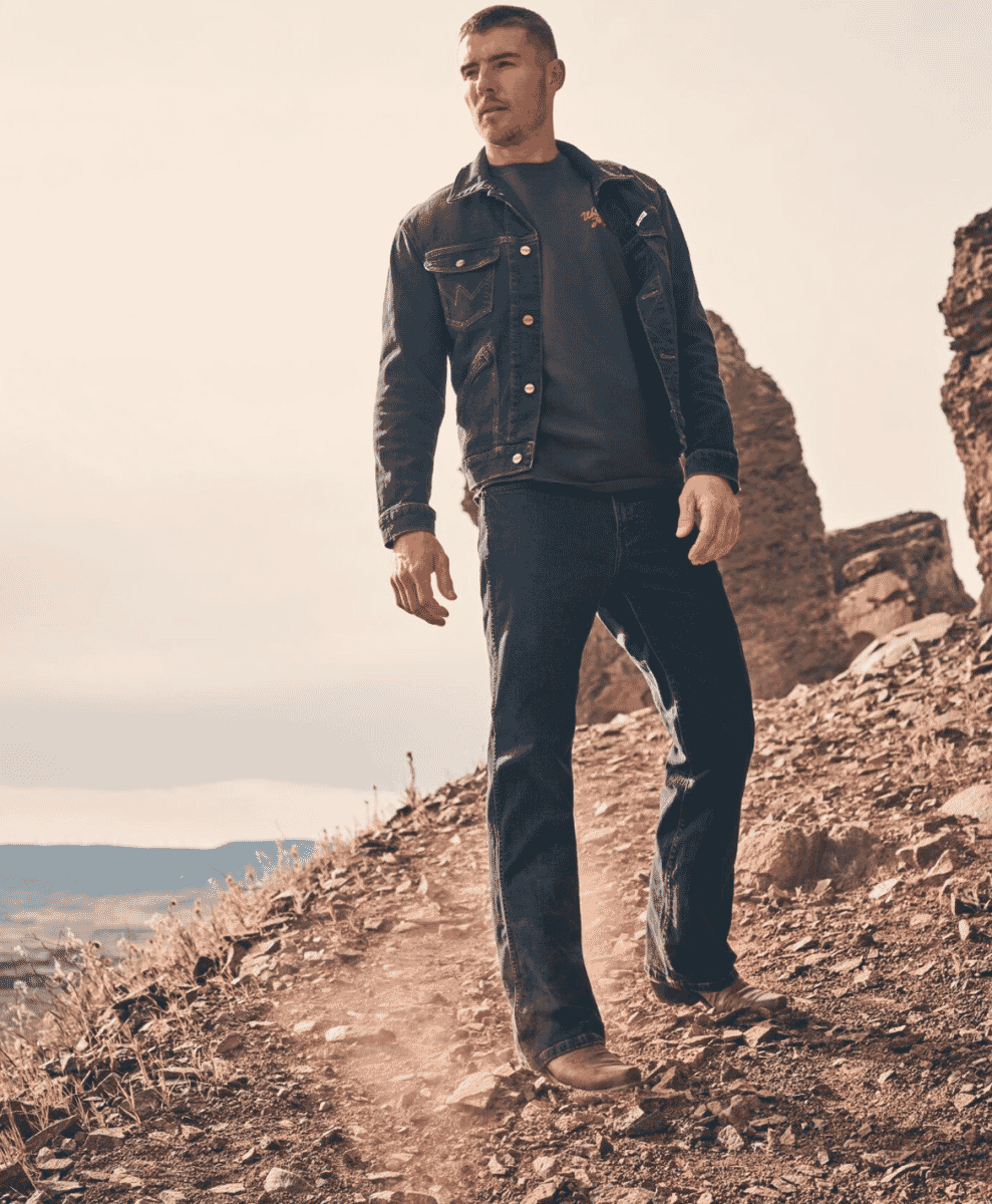 Wrangler’s identity is tied to the American West. Launched in 1947, the brand worked with rodeo riders to refine details such as higher back rises, flat rivets that would not scratch a saddle, and watch pockets positioned for ease on horseback. The famous Cowboy Cut jean still reflects those decisions. Compared to fashion denim, the fits can feel rigid, but that is the point. Wrangler is about utility shaped by a specific job. If you want a garment with a clear lineage and little interest in trends, it remains one of the most honest options.