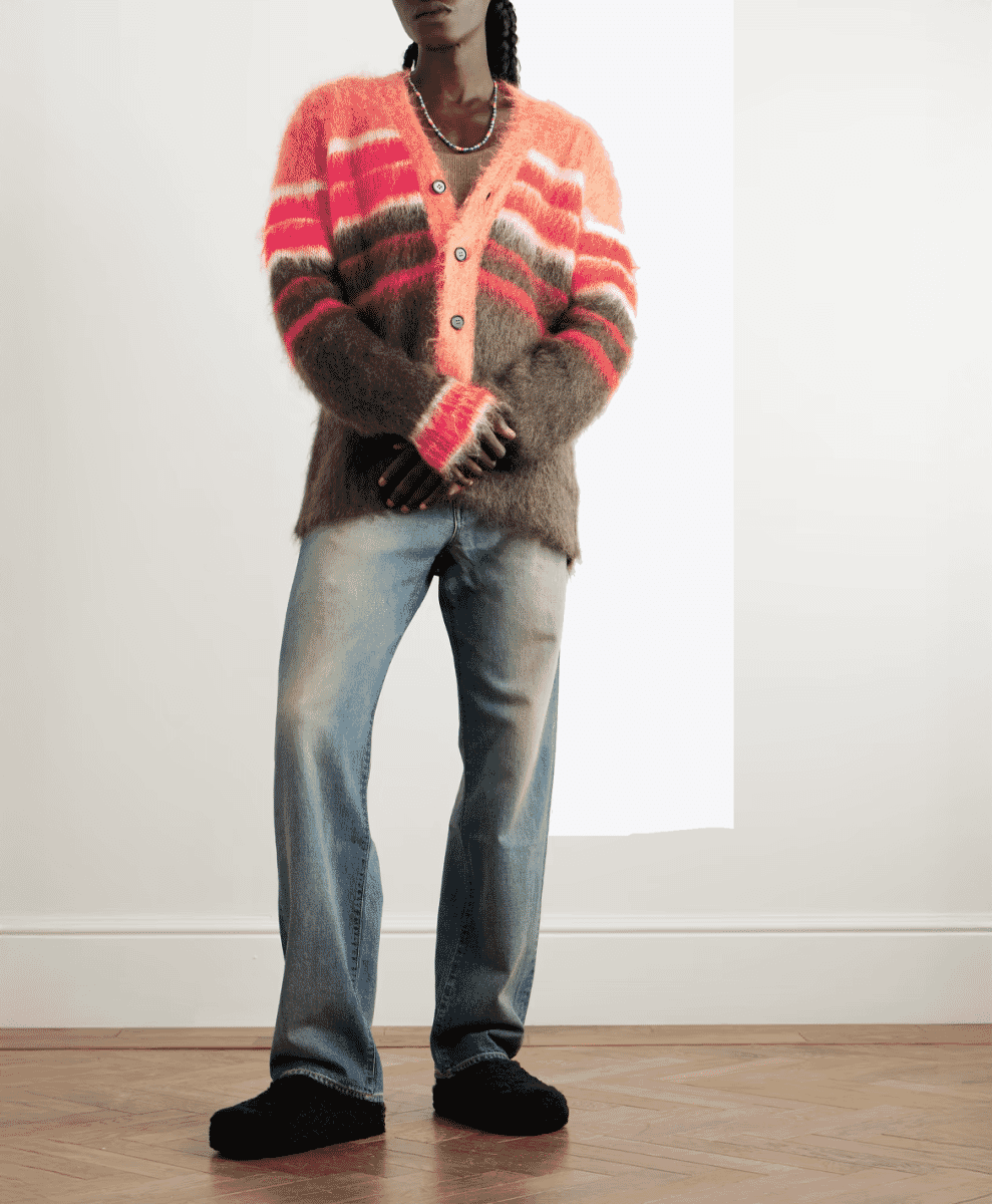 Swedish brand Our Legacy is the opposite of Marni’s boldness, offering something more subdued but equally high in quality. Known for minimalist design and exceptional craftsmanship, The label’s mohair cardigans stick to neutral tones and clean lines. There’s an attention to detail here that speaks to Scandinavian design principles – simple, functional, and timeless.