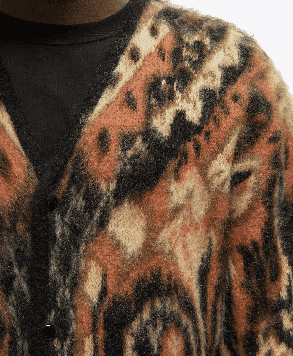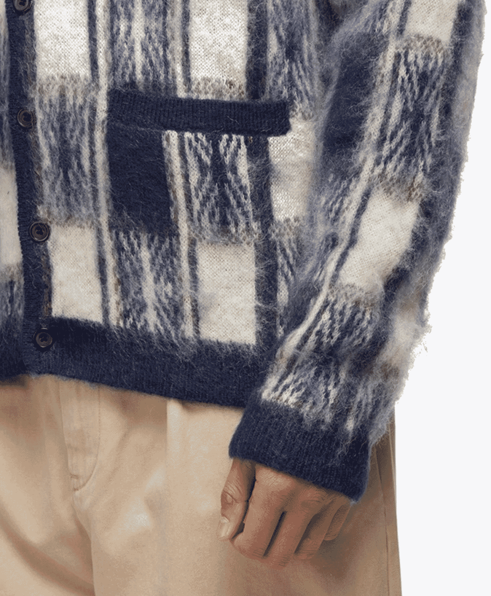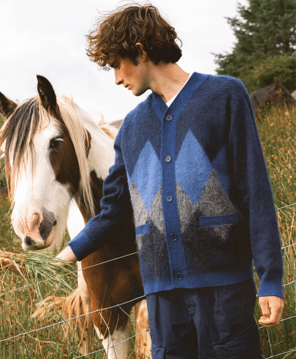 Beams has long been a leader in Japan’s fashion scene, effortlessly blending classic menswear staples with contemporary street style. When it comes to mohair cardigans, Beams delivers pieces that stand out. Bold patterns and vibrant colours are a hallmark of the label’s collections, with abstract prints and patterns featuring heavily.