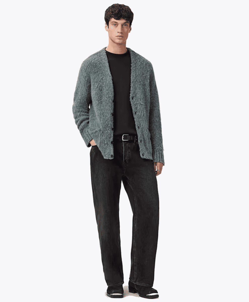 Once known for its edgy, rock-inspired aesthetic and leather-heavy collections, AllSaints has evolved into a go-to label for refined, modern staples with attitude. The brand’s cardigans reflect this shift, blending its signature moody sensibility with elevated everyday wear. Today’s AllSaints knits prioritize texture, fit, and understated design over bold logos or gimmicks.