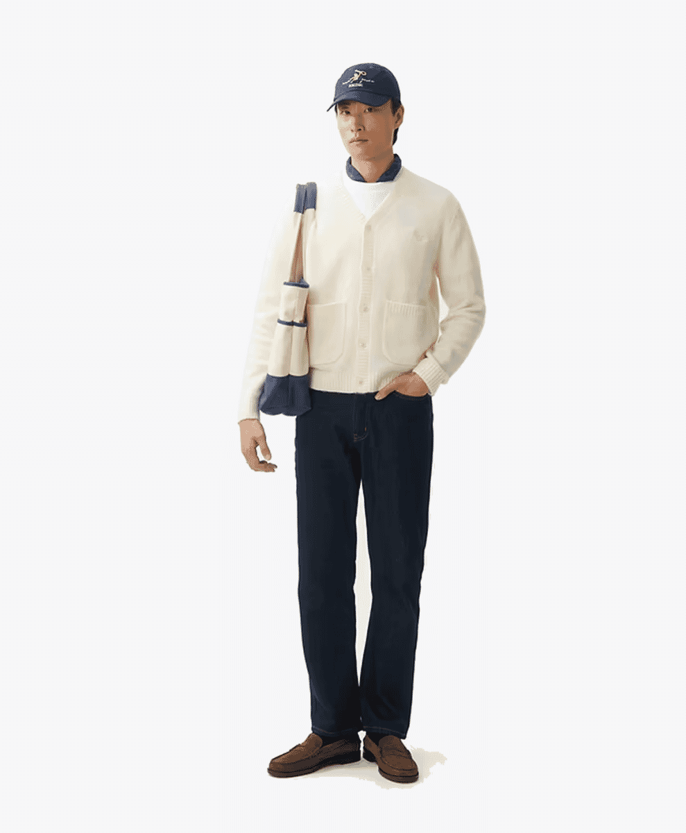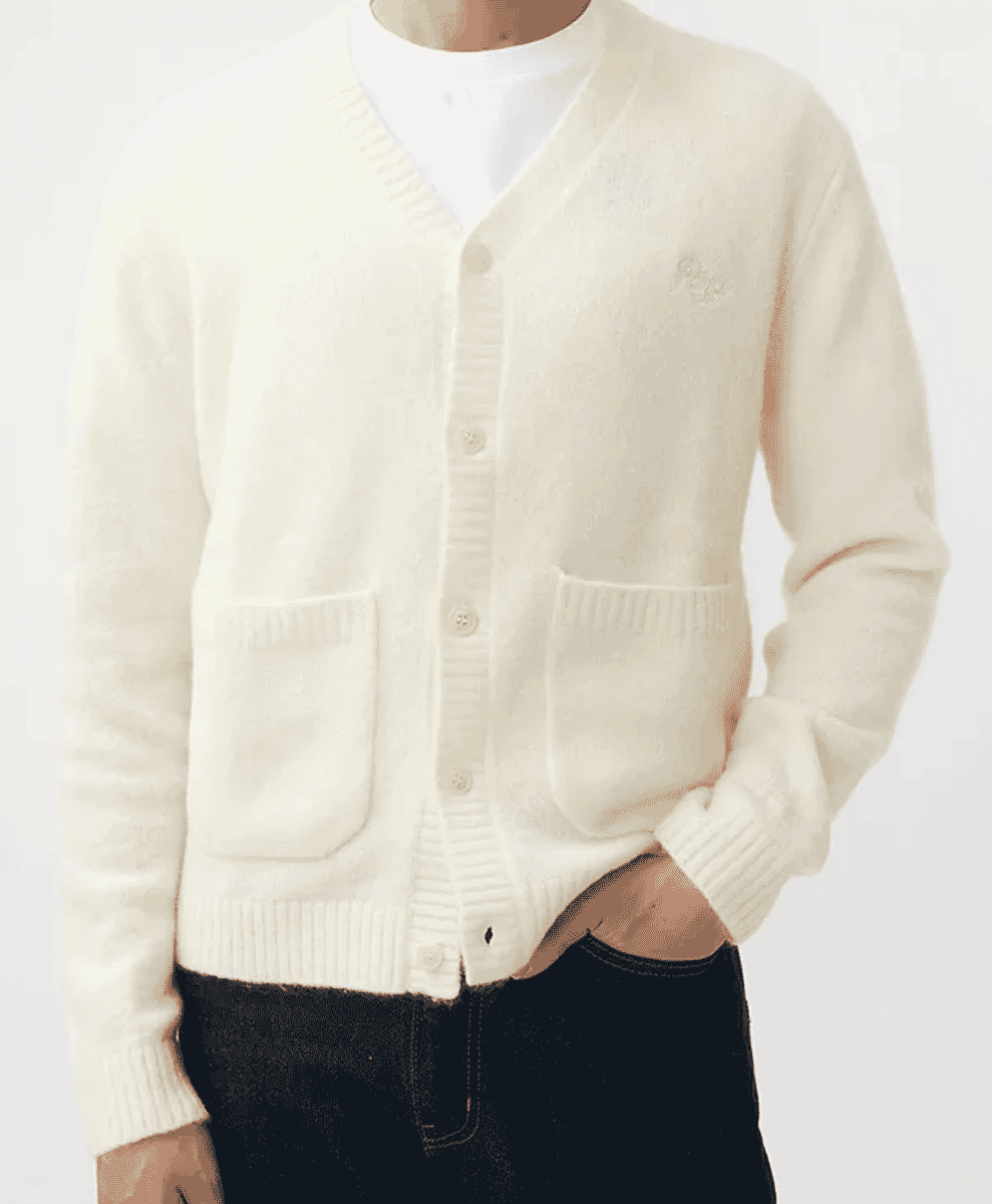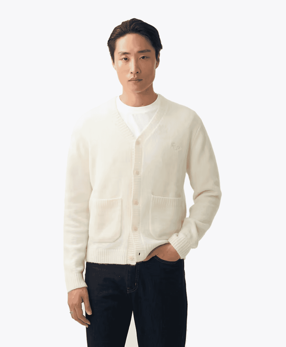 Beams’ cardigans tend to be relaxed (but not baggy) in fit, making them perfect for layering. And while prices do vary, you’re looking at a mid-range price tag for high-quality materials and unique designs. The brand’s appeal lies in its ability to merge Japanese craftsmanship with modern fashion, giving these cardigans a distinctive, iplayful edge.