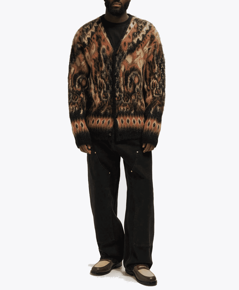 Japanese label Wacko Maria is known for its rebellious spirit, and this extends to its knitwear. The brand’s mohair cardigans often feature bold patterns – think animal prints and striking stripes – that make them statement pieces.