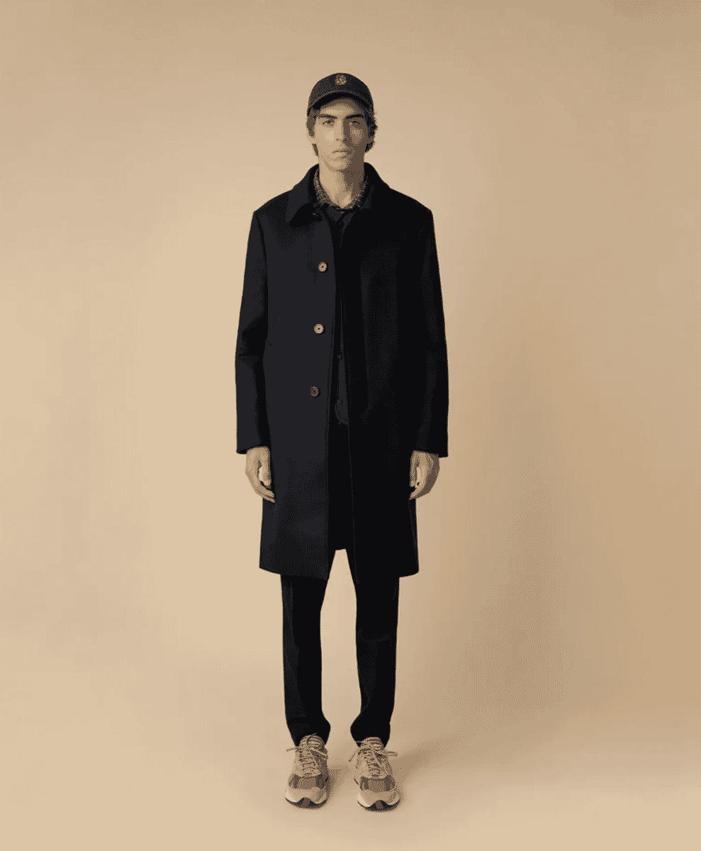 A mac or car coat offers a sharper line without feeling overly formal. The single breasted front and clean collar make it ideal for commuting, especially in wet climates where wool isn’t always practical. In cotton twill or technical fabrics, it gives you weather protection without the heaviness of an overcoat. It’s best for mild to moderate winters and works across a range of winter outfits, making it the versatile alternative for those who prefer a lighter, more minimal silhouette in their smart coat slot.