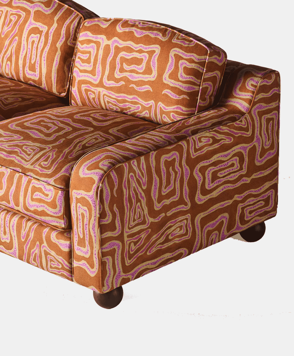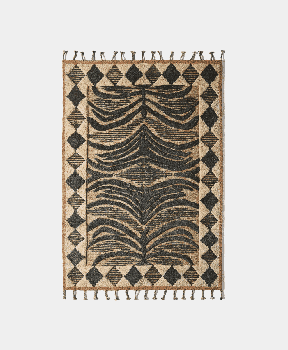 The collection introduces a set of key pieces that act as anchors rather than accents. The Lola Sofa, in Beaten Track Peach or Green, brings colour in a way that feels confident, not shouty. The V Daybed follows the same logic: sculptural form first, statement upholstery second. Rugs supply the graphic weight – the Wildcat Rug in Burnt Brown or Ash Black gives a room instant attitude, while the Beaten Track Rug in Adobe or Ginger adds depth without relying on neutrals. Even the throws (Stargazer and Wildcat) feel considered, the kind of finishing touch that can shift the temperature of a room without redecorating it.