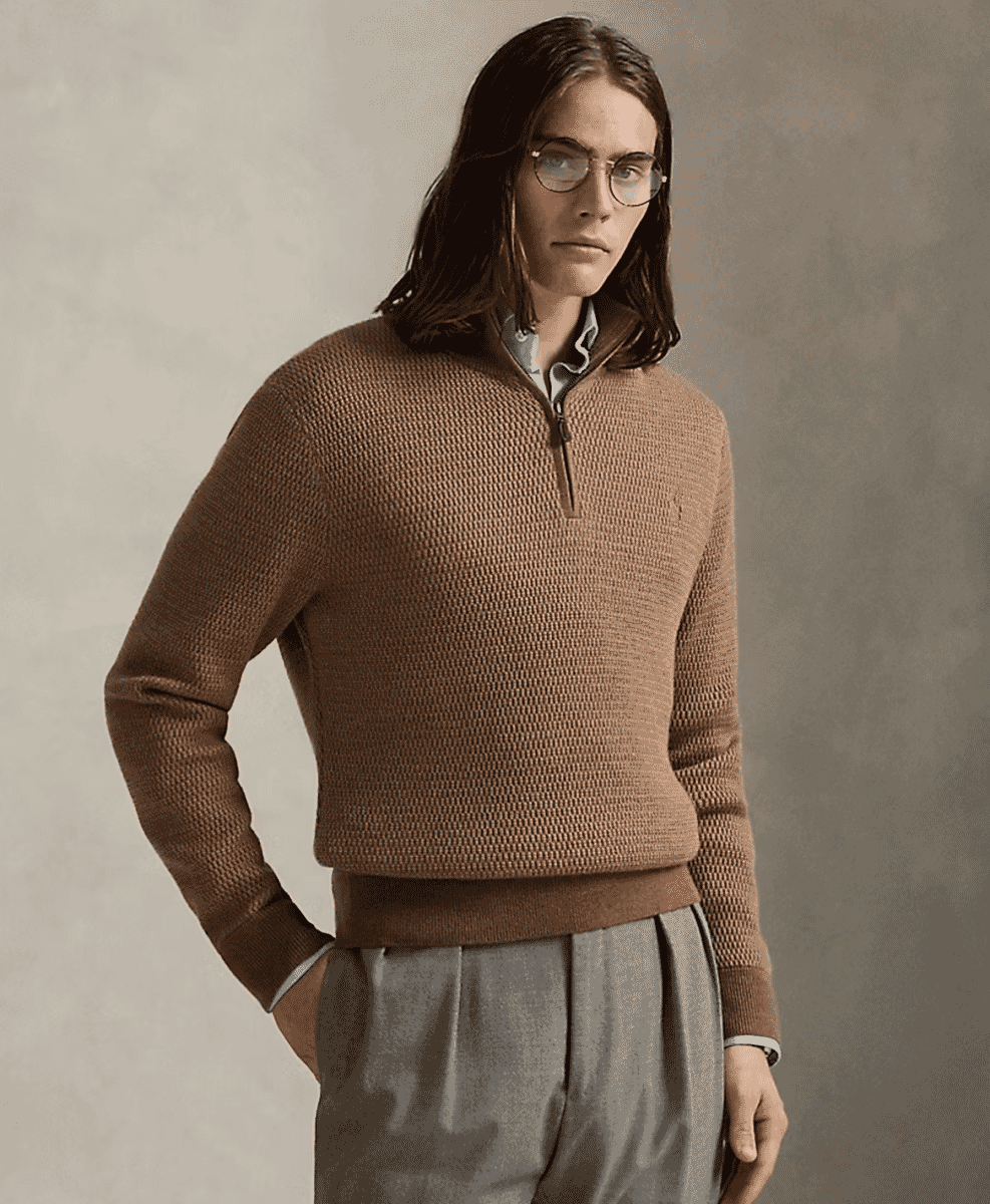 Polo Ralph Lauren is closely tied to the preppy quarter zip silhouette. Its long history in American sportswear means the brand understands the appeal of a knit that feels both collegiate and versatile. For many people, Polo remains the reference point for the style.