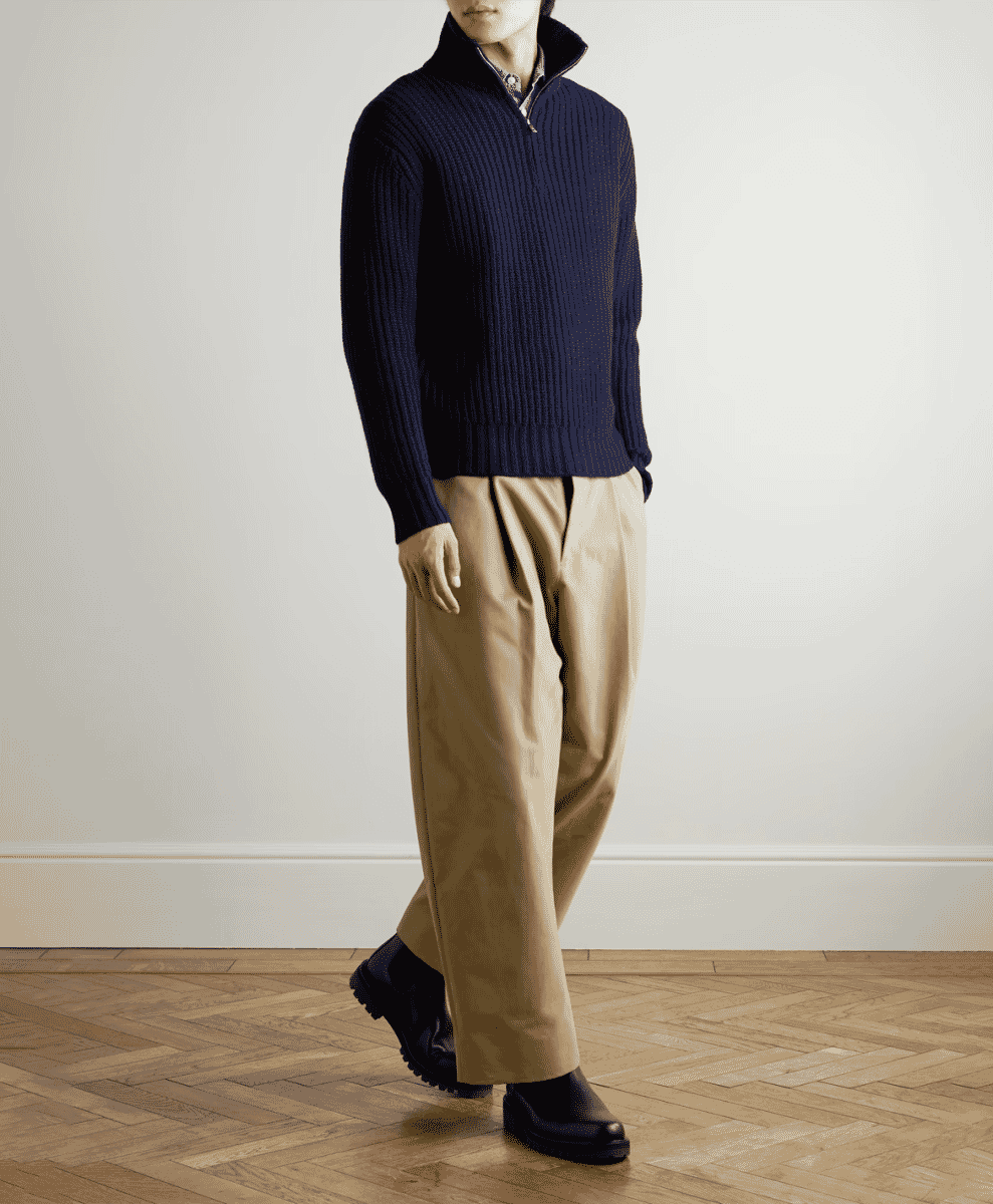 Rooted in British tailoring and classic menswear, Drake’s brings a relaxed formality to its knitwear. A Drake’s quarter zip sits naturally alongside Oxford shirts, chore jackets and the rest of a traditional yet modern wardrobe. It strikes a pleasant balance between casual and refined.
