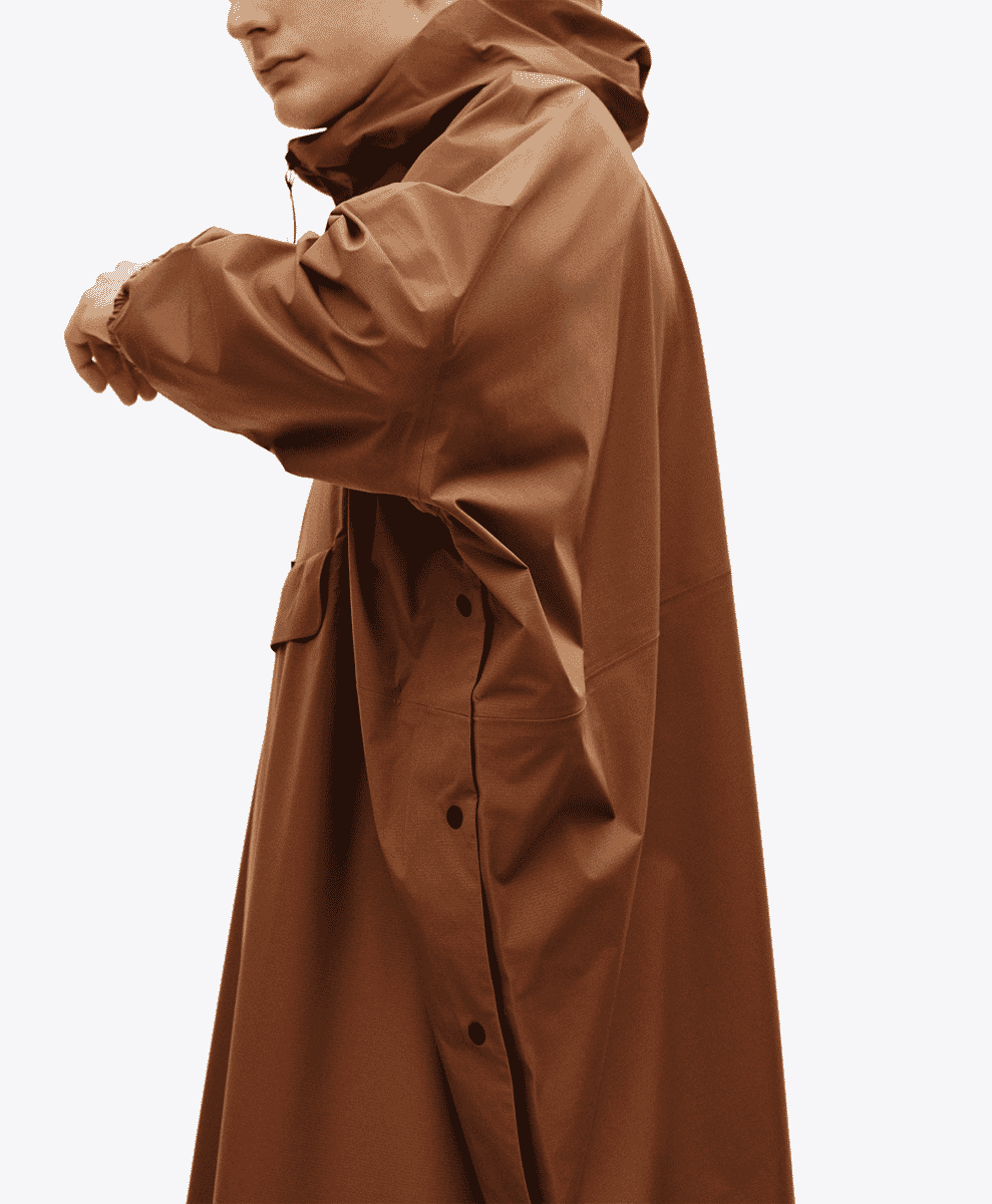 Leading the drop is a 3-layer waterproof poncho designed for commuting in unpredictable weather. Cut long for coverage on commutes, it features a helmet-compatible hood, taped seams, and zippered storage, with reflective logos front and back. Alongside it sits a lightweight utility jacket made from water-repellent nylon, with a magnet chest pocket, rear vent for airflow, extended back length, and reflective heat-transfer details.