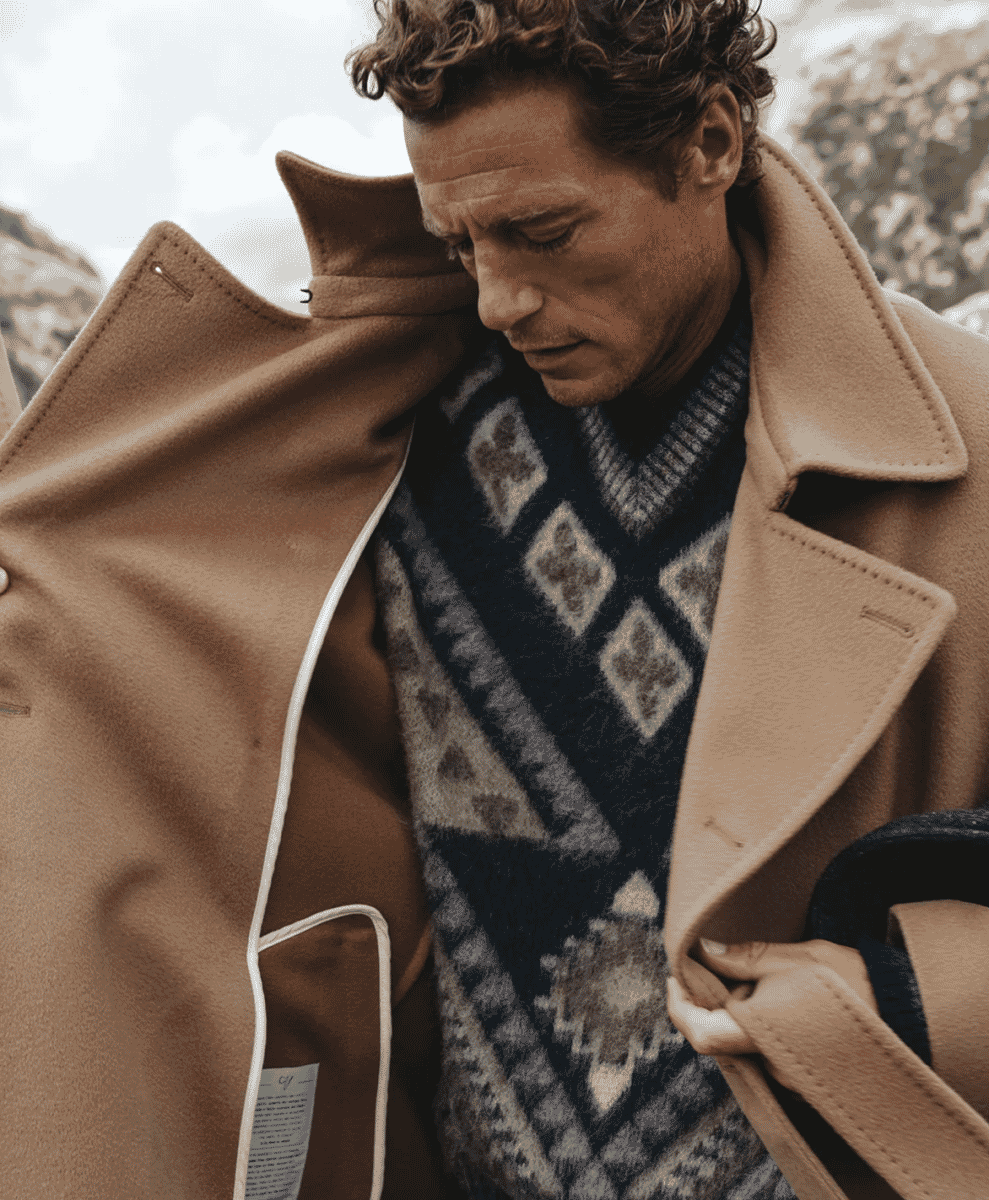 Where outerwear shields, knitwear insulates. It’s what sits close to you, trapping warmth and adding texture. Start with crew neck jumpers like those offered by Luca Faloni in merino or lambswool – light enough to layer yet substantial enough to hold shape. Add a roll neck or two for smarter looks, worn beneath tailoring or an overcoat when the temperature dips.