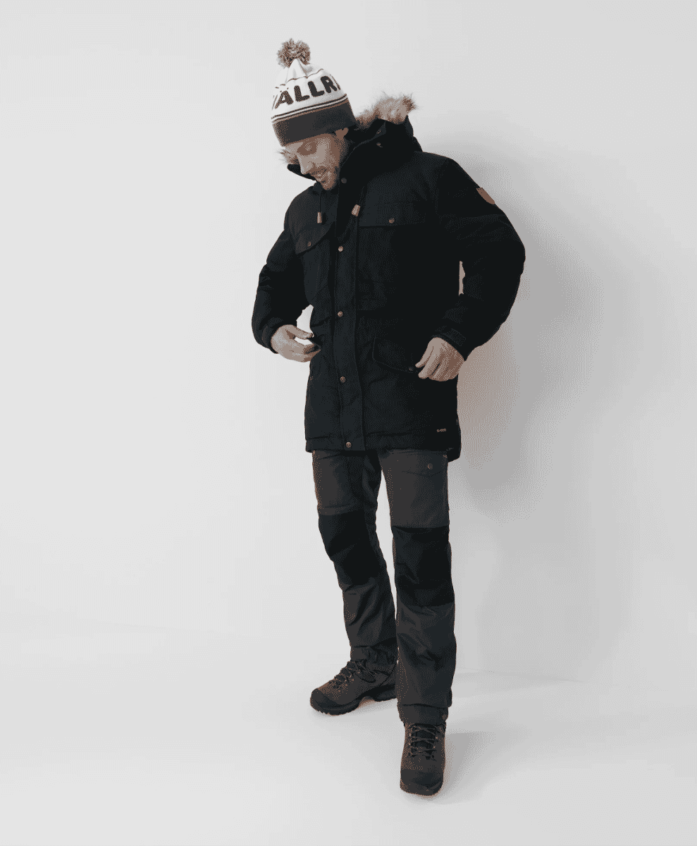 Fjällräven approaches waxed jackets through a Scandinavian lens. Its Greenland Jacket, made from G-1000 fabric, is designed to be waxed by the wearer using Greenland Wax. The result is a system that allows you to tailor weather resistance to your needs. The focus is on versatility, longevity and environmental responsibility rather than heritage aesthetics alone.