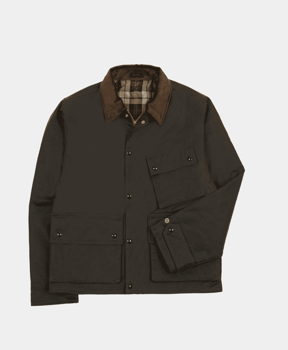 Drake’s brings a more refined sensibility to the waxed jacket. Known for tailoring and soft-shouldered jackets, the brand applies the same attention to proportion and fabric to its outerwear. Drake’s waxed jackets are understated and elegant, designed to sit comfortably over tailoring as well as casual layers.