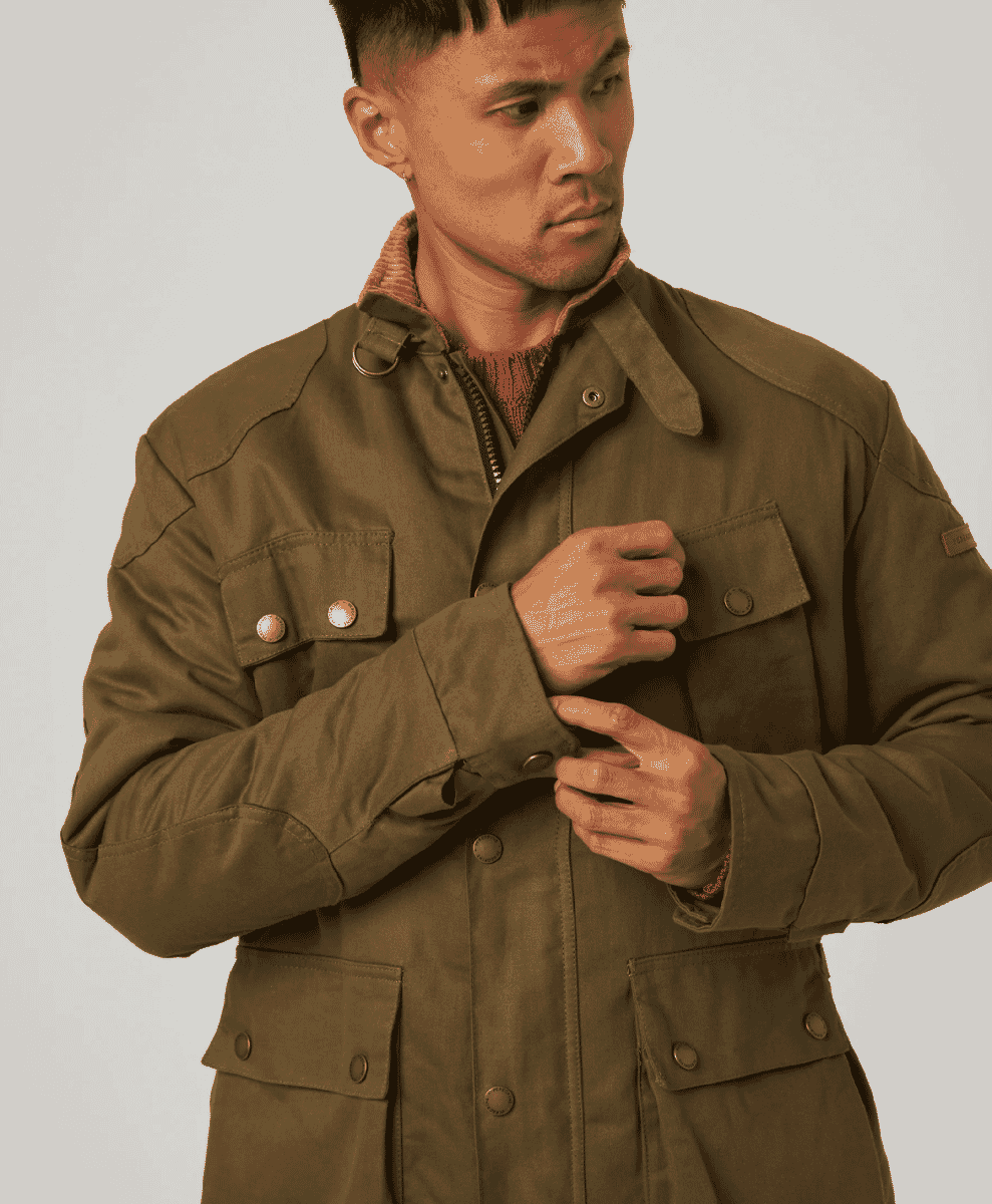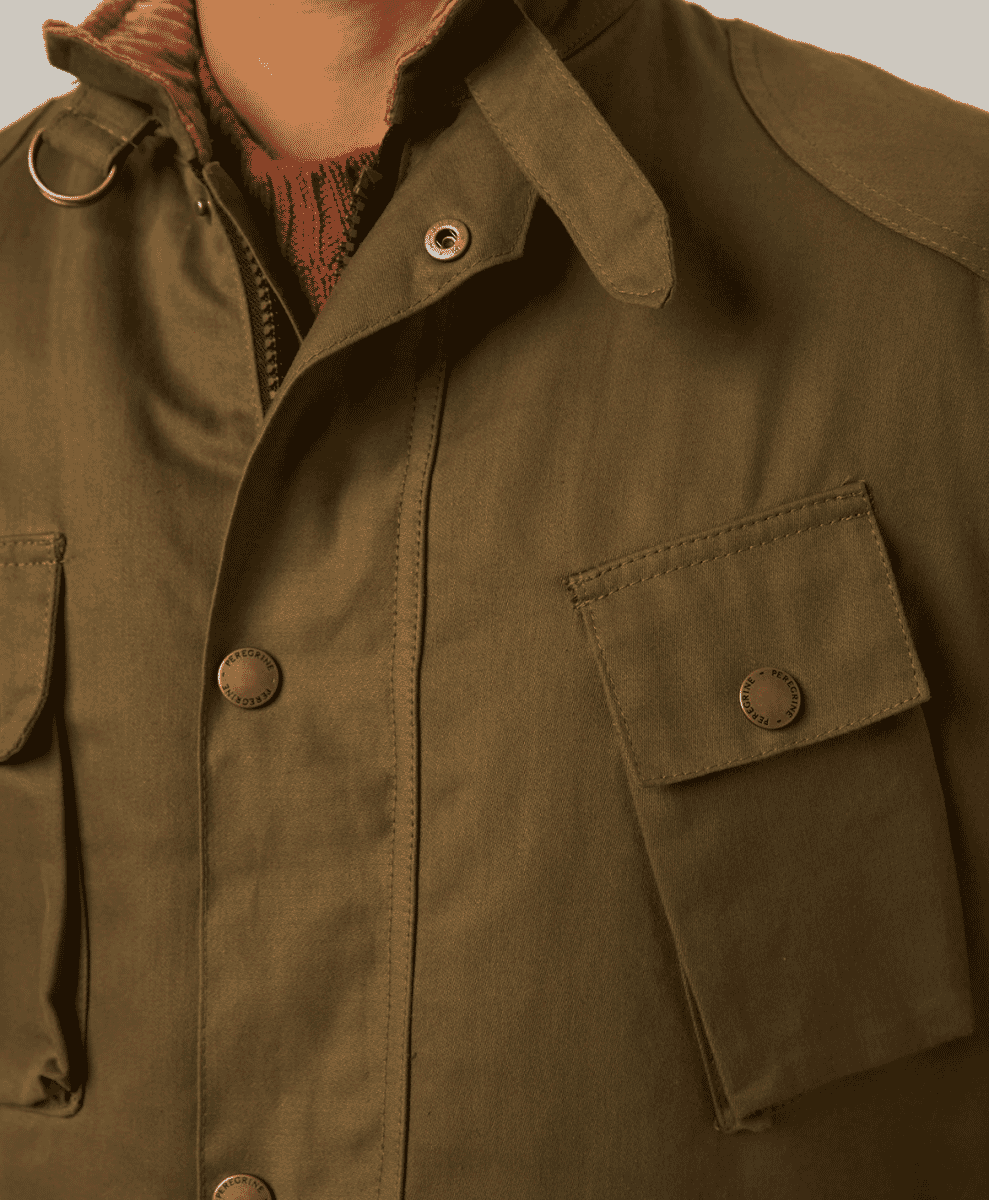 Belstaff’s waxed jackets are rooted in motorcycling rather than farming. The brand became known for protective outerwear that balanced durability with mobility, most famously through the Trialmaster jacket. Compared to traditional country styles, Belstaff’s designs are often slimmer and more structured, with a slightly more urban edge.